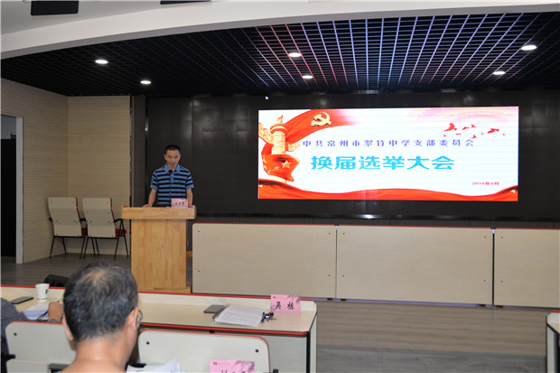 为加强学校基层党组织建设,促进学校持续科学创优,9月25日下午翠竹中学党支部换届选举大会顺利召开,会议由支部副书记、校长吴栋同志主持,教育工委组织处周炜副处长一并出席会议。 选举大会首先由周贵兴书记代表上一届党支部围绕“提高支部组织生活质量,促进学校持续科学创优”这一主题,对学校党建工作做了工作汇报,全面回顾、总结了翠中在党支部领导下的稳健发展。 随后,组织处周炜副处长发表讲话,一方面对换届选举表示祝贺,另一方面,对全体党员提出四点建议,希望党员不忘初心,砥砺前行。接着吴栋校长宣读了选举办法和候选人名单,推选了监票人、计票人名单。在投票环节中,支部严格按照公平、公正、公开的原则。经党员大会无记名、差额投票,周贵兴、吴栋、丁文黎、屠国斌、宋华燕五名同志当选为党支部新一届委员会委员。 选举结束后,支部开展专题组织生活会,学习主题是落实党风廉政建设,廉洁从教,教书育人做楷模。首先由学校纪检委员丁文黎副校长就党风廉政建设的相关制度规定做了解读,对全体党员提出学习、履责、表率和积极主动开展批评与自我批评四点做了具体要求,希望全体党员清白做人,干净做事,知敬畏存戒惧守底线,不忘初心。随后全体党员开展面对面的批评和自我批评,班主任代表王萍老师、青年教师代表崔亚丽老师和后勤工作代表周英会计大会开展了批评和自我批评,明确自身问题,积极主动优化自身业务水平。 最后周贵兴书记就认真学习文件精神对全体党员提出要求,希望每一位党员同志认真学习,加强作风建设,紧扣工作实际,争做先锋模范。 (文:崔亚丽 图:屠琍)