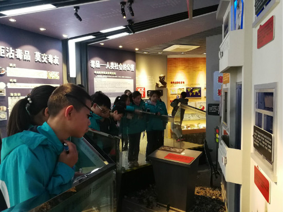 我们进入展览室我记下了两个中国古训:鸦片毒害,中国之殇,万恶毒为首。我们参观了几类毒品的照片和作用,冰毒:呈晶莹剔透,似冰;可卡因:对人体消化,免疫,心血管泌尿生殖系统有损伤;海洛因:可抽吸,鼻吸,注射,所有毒品比黄金还要贵,吸了之后你就会变成“蠢穷坏”。