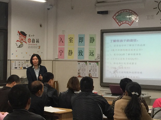 讲座结束后,家长们进班参加以班级为单位的家长交流会。各班班主任向与会家长做了简短汇报,内容涵盖本学期开学以来的学校工作、班级活动及学生在校表现等。还分析了本次期中检测的成绩以及学生在学习中存在的问题,给予家长一些具体有针对性的家庭教育建议。各科任老师也和家长交流了应如何更好的配合学校做好教育工作的看法。经过班主任和科任老师们的讲解分析和耐心指导,家长们受到了很大的鼓舞和启发。