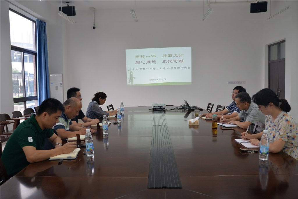 829日是常州市翠竹中学新学期重新起航的第一天,全体教工饱满地回到了过渡校区——虹景中学,在迎来了新的航首的同时,也一直企盼翠中新学校的建成。在翠竹中学和虹景中学两校一体格局暂时无法改变的情况下,两校决策者都并没有将之视为学校发展的阻碍,而是积极商讨,谋求两校共进大计。829日下午两校管理研讨会如期召开。