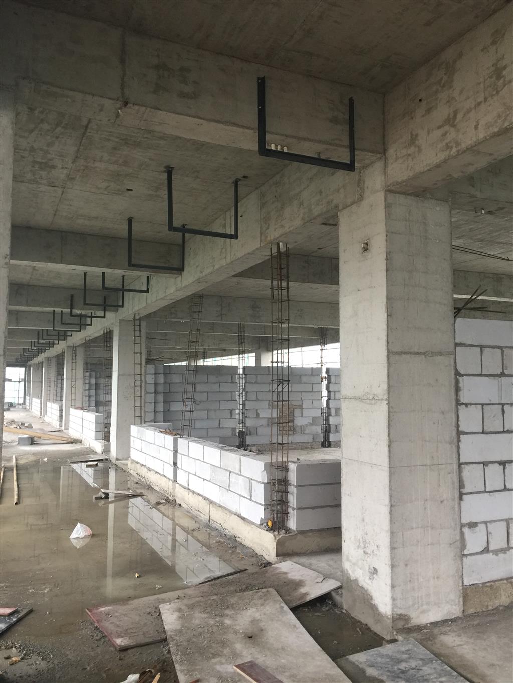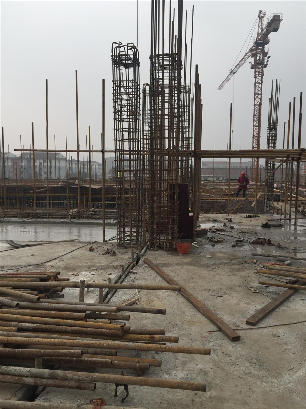 2号教学行政楼完成情况:主体1区二层至五层墙体砌筑完成50%;主体2区、3区、4区、5区四层结平混凝土浇筑完成。