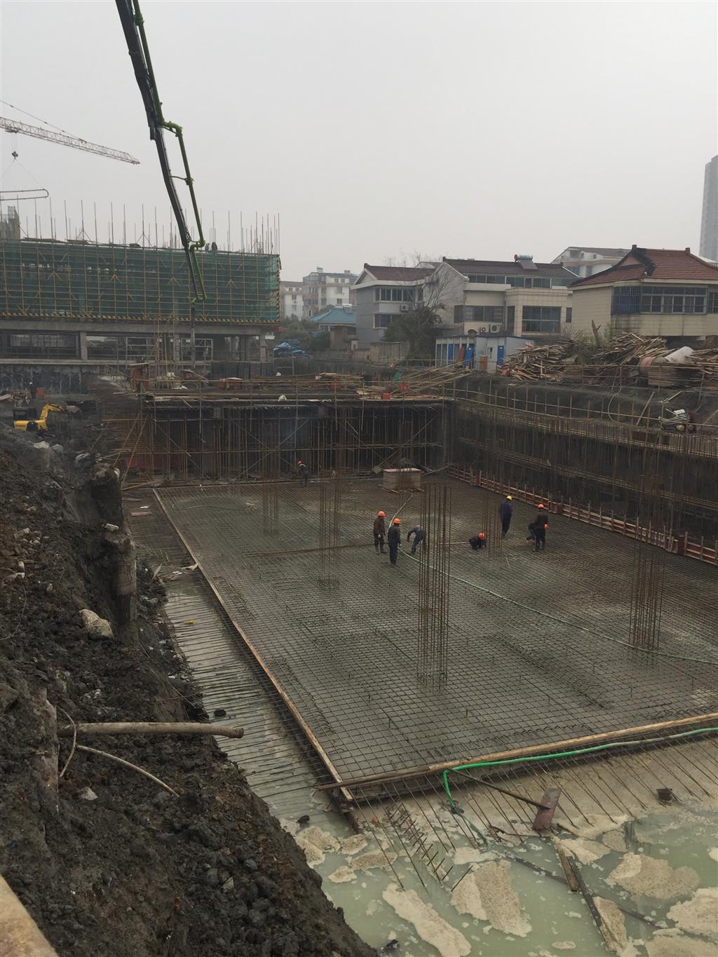 1号科技综合楼完成情况:主体1区二层结平模板安装; 主体2区三层结平混凝土浇筑完成;地下室5区顶板混凝土完成;地下室6区底板完成50%;地下室3区土方开挖完成50%。