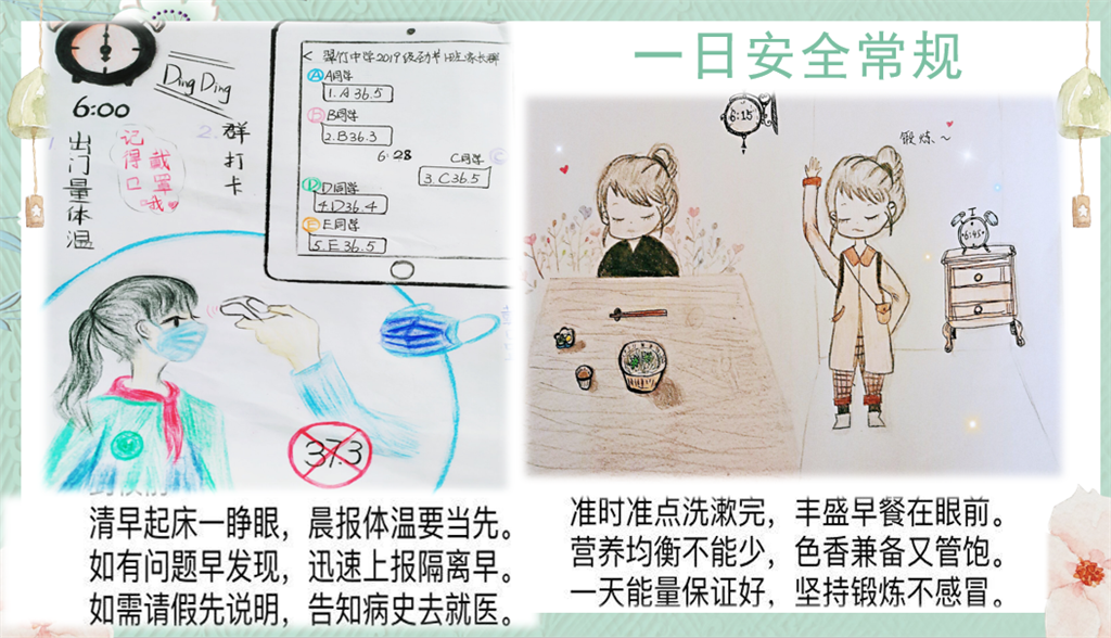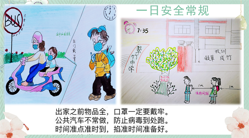 每年的4月15日为全民国家安全教育日,今年的主题为“坚持总体国家安全观,统筹传统安全和非传统安全,为决胜全面建成小康社会提供坚强保障。”翠竹中学从学科教学与班级教育两方面着手,加强我校师生生命安全教育。 作为自然科学重要分支的生物学科教师,结合学科内容通过图片讲解等方式,引导同学们关注生物安全,保护自然,同时从生活细节做起,加强自身安全防御。道德与法治课的老师们精心挑选视频,高屋建瓴,从宏观角度分析本次疫情背后的安全警示意义,提高同学们国家安全意识。 在每周一次的班会上,七八年级的班主任们也丝毫不敢懈怠。围绕“疫情”了解英雄、了解生物安全,谈心得、谈心愿、谈心理……七(10)班同学们更是用一只只生花妙笔化腐朽为神奇,以漫画版开学防疫宣传海报的形式,向更多人宣传防疫小知识。 春花已绽,未来可期,立足安全第一,共迎灿烂春光。