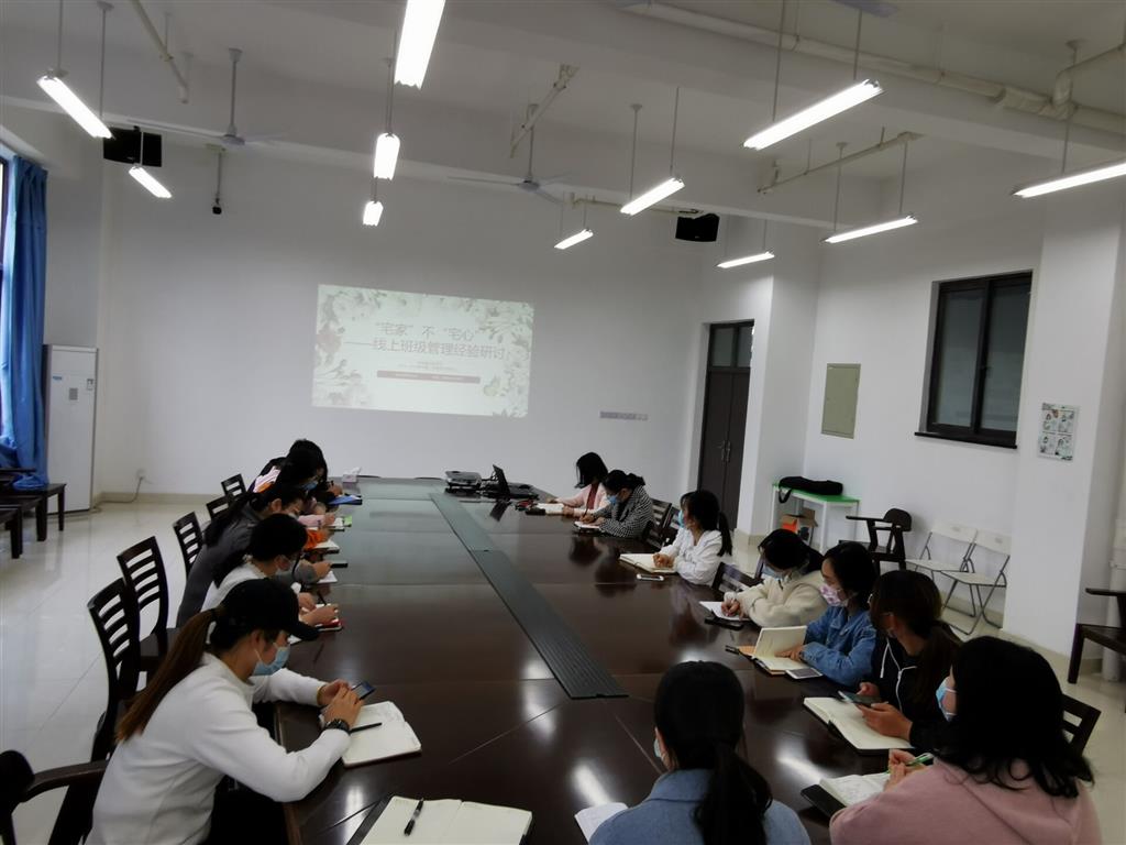 2020429日,春意阑珊时节,姗姗来迟的学期已开始半月,线上教学告一段落,翠竹中学青年教师劲节营全体成员在一楼会议室开展“‘宅家’不‘宅心’——线上班级管理经验探讨”活动。