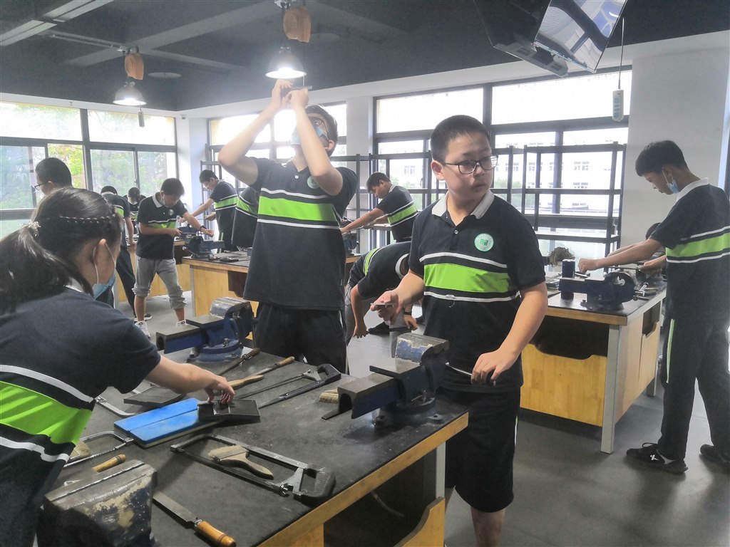 金风送爽,丹桂飘香秋意浓。常州市翠竹中学八年级学生来到青少年活动中心,参加盼望已久的劳动技术培训课程。恰翠中少年,风华正茂。他们积极活跃的身影出现在金工、篆刻、陶艺、插花、烘培、建筑模型、3D打印等23门课程教室里,他们欢乐自信的笑容绽放在这场启发思维、解放双手的劳动盛宴中。 科学魅力无限 科学理想浩瀚,创新之星璀璨。在这里,学生们是严谨缜密的生物学家,探索叶脉背后广阔的植物世界;他们也是革故鼎新的创造者,构建未来世界的美好蓝图……科学这片无垠天地期待他们尽情探索的身影。 工坊匠心独运 工坊体验引领学生感受“匠心”精神。在实践中,他们体验了木工、金工、电工、篆刻、陶艺、建筑等工作的艰辛与喜悦。壁立千仞匠心添笔,风华正茂制造卓越。手握各种工具,尽心尽力、精益求精,学生们用不同材质将一切抽象变为具体。 美学馥雅流芳 一支花、一盏茶、一卷画,优雅的姿态,行云流水的动作,皆是艺术与美的享受;巧手而制芬芳四溢的点心则是烘焙特有的魅力。茶香,花香,糕点香……汇成这个秋天最美的气息。 观得天高气爽,共享美好时光。走出校园,走进生活,学生们深切体会到了劳动的乐趣,更对职业、未来有了全新的体验,愿翠中少年在实践、艺术与美的润泽下全面发展,不负韶华,探索人生的无限可能! 常州市翠竹中学 瞿曜