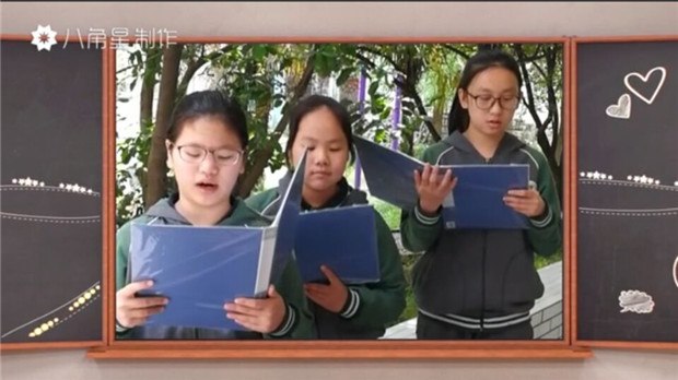 即便感冒咳嗽、喉咙嘶哑,但您总是坚持着为我们上课.即便疲惫不堪、异常忙碌,您总是放弃午休、课间休息为我们讲解习题.学习,您诲人不倦.生活,您悉心呵护.活动,您寸步不离。您,是我们最亲爱的老师们啊......”这次的朗诵视频,各班同学集聚创意,纷纷想把校园最后美丽的画面捕捉展现,因此背景丰富极了,有绿意盎然的濯樱园,色彩丰富的启智园,书香静谧的图书馆,整齐干净的教室......既有学生跑操的矫健,又有师生共度的温暖……带给我们的,是对母校的浓浓留恋,还有对翠中师生的深深赞美。
