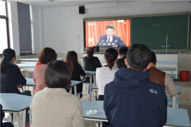 观看报告、学习报告,党员教工纷纷表示紧密团结在以习近平同志为核心的党中央周围,充分发挥党员先锋模范作用,争做“四讲四有”合格党员,扎实做好本职工作,以自身实际行动为教育事业为实现中华民族伟大复兴中国梦贡献力量。