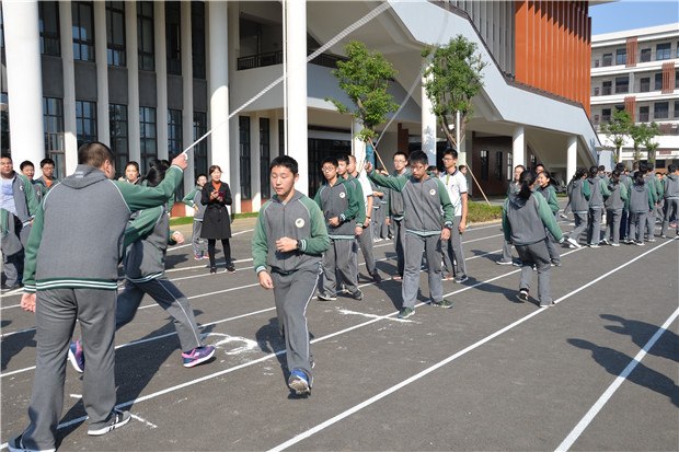 为了激发学生体育锻炼热潮,提升学生素质,促进学生健康,提高班级凝聚力,培养学生合作能力、竞争意识,常州市翠竹中学于10月23日到27日举行为期五天的第二十届运动会。 运动会比赛项目以趣味为主导,分为规定项目和集体项目两大类。 运动会之大力士的盛宴——拔河比赛 10月23日下午第三节课,常州市翠竹中学虹景过渡校区的操场上一片欢腾,九年级的同学们在这里举行拔河比赛。 操场上,只见参赛双方队员铆足了劲,咬牙、沉胯、蹬地、后仰,展现出最标准的姿态,最强大的力量,周围围观的老师同学也憋足了劲加油助威,加油声排山倒海般传来。霎时间,喝彩声、加油声此起彼伏,拉开欢乐的帷幕。 运动会之绳间的舞蹈——跳长绳 长绳作为体现凝聚力和协作性的集体活动,一向受到老师同学的欢迎。常州市翠竹中学的跳长绳比赛在基础动作的基础上,发展出“8”字长绳、绳间交错和多人跳长绳三种玩法,根据三个年级的差异,分别把三种玩法落实到七、九、八三个年级中。 以班级为单位,整个年级的跳长绳队伍在跑道上一字排开,简单的热身活动之后,优雅而又激烈的绳间的舞蹈开始了:伴随着长绳触地的有节奏的“啪啪”声,一个个矫健的身影熟练而飞快的穿梭在绳间,姿态优美利落,像一只只小燕子般轻盈灵动。偶有失误,迅速归位,被打乱的节奏很快就恢复,更有规律更有节奏感。 运动会之风一般的速度——羽毛球托球跑接力 羽毛球托球跑接力是翠中集体运动的保留项目,因其简便好操作,对学生的素质要求不高,受到同学们的普遍欢迎。 在30米的跑道上,双方队员轮流用羽毛球拍托羽毛球向前奔跑,与其说考验速度,不如说考验的是学生的技巧和协调,要做到风一般可不是光靠速度就成。在不断尝试不断改进的基础上,各班同学也慢慢掌握了技巧,失误越来越少,速度越来越快,向着风一般的速度,加油! 运动会之谜之技巧——赶“猪”跑 在七年级同学参加的各个集体项目中,令同学们又爱又恨的项目就是赶“猪”跑了,当然,这里的“猪”并不是真正的猪,而是一大一小两只球(篮球和排球)。比赛开始,要求参赛队员用一根木棍拨动大小两球,将“猪”沿跑道赶向对面。 可别小看了这大小两只球,虽不像“猪”,可是比“猪”会滚多了,完全不听指挥,只见场上的选手们状况百出,不是小球滚太快跟不上,就是大球滚偏了,一个个手忙脚乱,整个操场洋溢着快活的空气。 运动会之团结就是力量——滚雪球 要问本届运动会中哪个项目最能体现团结,莫过于“滚雪球”了。滚雪球顾名思义,就像雪球一样越滚越大,这项活动也是如此,慢慢的一个一个增加人数,直至整支队伍。在奔跑的过程中,不限制队伍的排法,但每个队员必须手拉手,不得脱手。 只见操场上,一个个“雪球”紧紧抱团,喊着整齐的口号,在操场上快速移动,班级的凝聚力和荣誉感在这一刻上升到最神圣的位置。没有被选为参赛者的同学,围在操场边,为自己的班级呐喊助威,整个场面空前热烈。 本届运动会虽然侧重于“趣味”,但根据三个年级学生的特点,各有侧重,七年级学生活泼好动,项目中跑跳的内容比较多,充分发挥七年级同学的优势;八年级同学经过一年多的磨合,班集体初见规模,所以在安排项目时,充分考虑到这点,能体现班级凝聚力的项目当仁不让;九年级同学学习压力比较大,加上年龄的关系,在趣味的同时兼顾技巧,更受九年级同学的喜爱。 在其乐融融的竞赛氛围中,常州市翠竹中学的学生们锻炼了身体,凝聚了班级,培养了学生的各项能力。