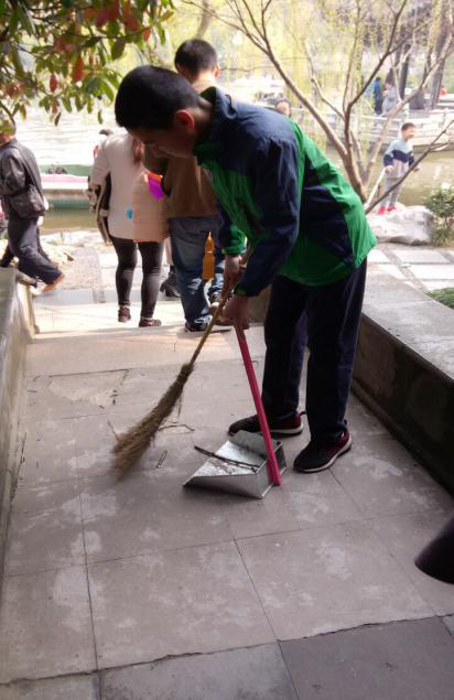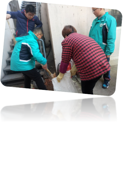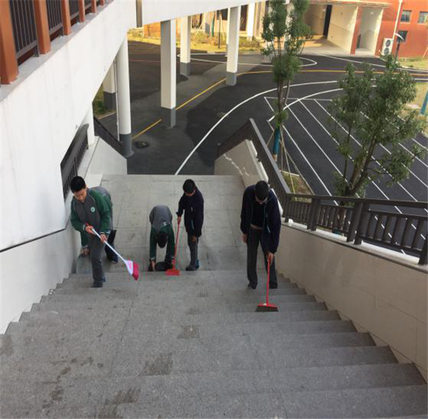 本次活动,我们打扫的是体育馆的一部分区域。这里是卫生死角,几乎没有人来打扫过,再加上面积过大,所以必须分工合作。在打扫的过程中,每一个人都很卖力很积极地去完成自己分内的工作。从楼梯扫到窗台,从扶手擦到栏杆,不能说打扫的一尘不染,但是较之前相比,简直是有了天翻地覆的变化。在这背后,是同学们的辛勤劳动。同学们为了尽可能地将每一处地方都打扫干净,全部都使出了浑身解数。有的蹲着,在楼梯底下捡垃圾;有的趴着,在石缝里擦灰尘;有的跳起来,只为了擦最高处的柱子......每个人都丢下了包袱,每个人都尽自己最大的力量。