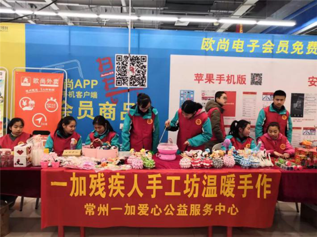 310号下午一点至四点,一加爱心社翠竹中学七(2)分队与永宁欧尚在超市二楼入口处联合进行一加残疾人手工坊暖心义卖活动,共义卖善款1496元,全部捐赠给一加小院。