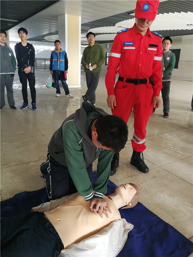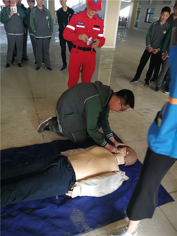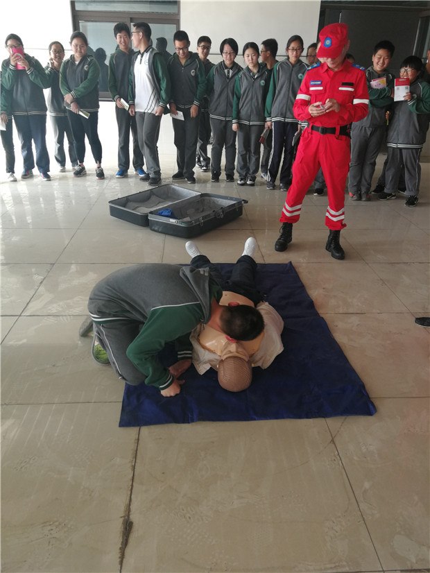 进行急救培训活动。讲座中,老师先给孩子们具体介绍了红十字的来历与基本的急救措施,然后一步一步讲解并亲自示范了心肺复苏的方法,孩子们也跃跃欲试,纷纷上前尝试操作,感受具体而深刻。