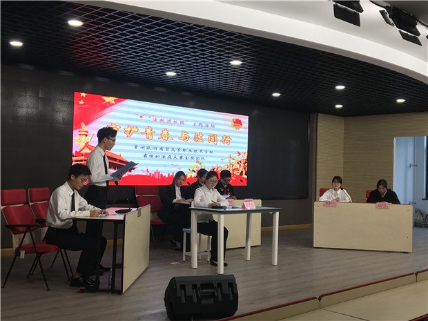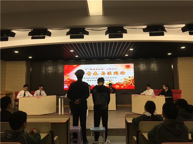 青年者,人生之王,惟知跃进,惟知雄飞,惟知自由之精神,奇癖之思想,敏锐之直觉,活泼之生命,以创造环境,征服历史。当代社会是一个法治社会,作为国家未来的小公民,我们应对知法懂法守法护法,提升法律素养。为此,我校团委有幸邀请到了来自旅游商贸学校的同学们,将带来省模拟法庭大赛金奖作品。表演是精彩的,立意是深刻的,希望同学们能培养法制意识,拥有法制精神,让法律为青春护航!