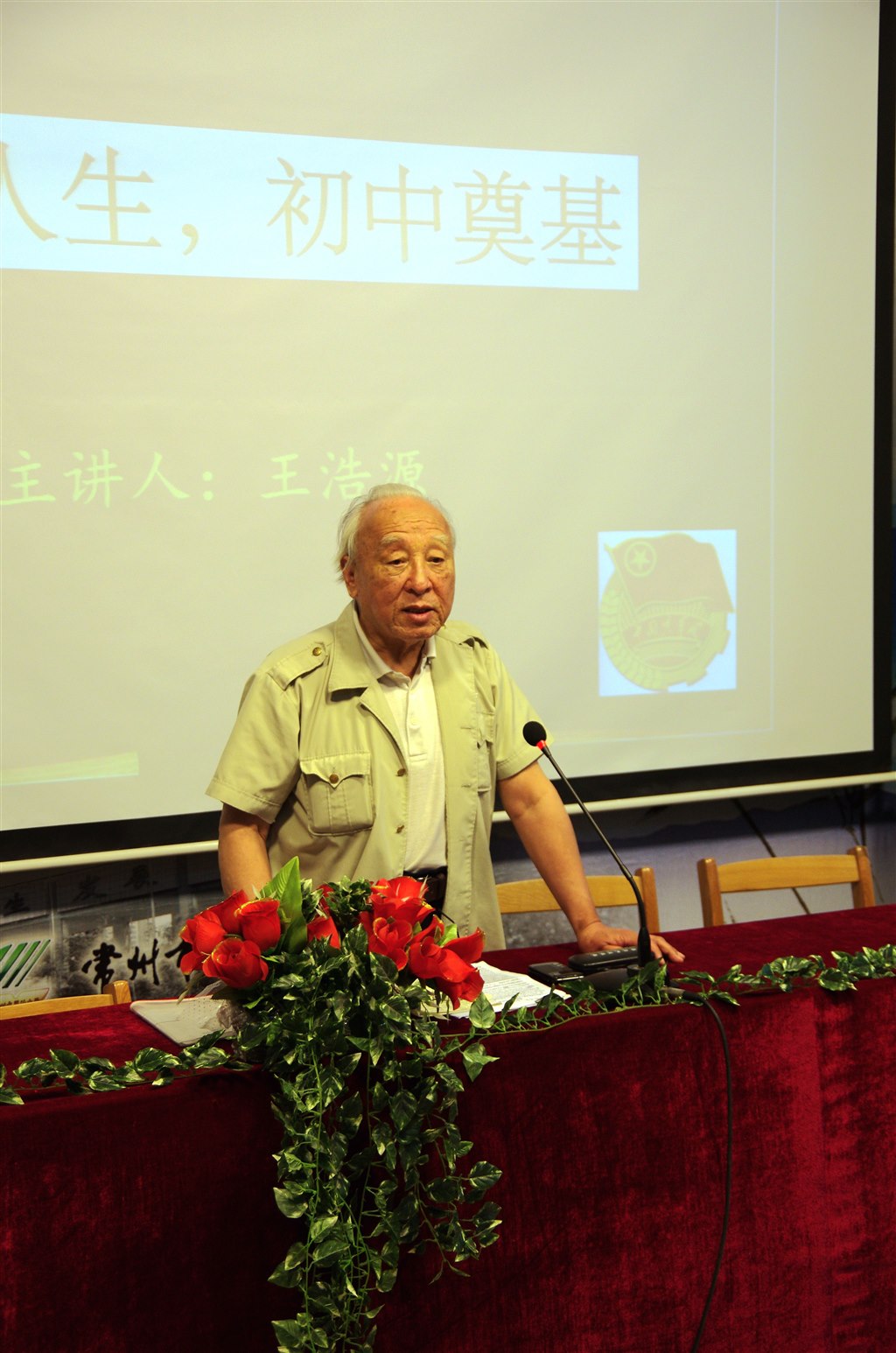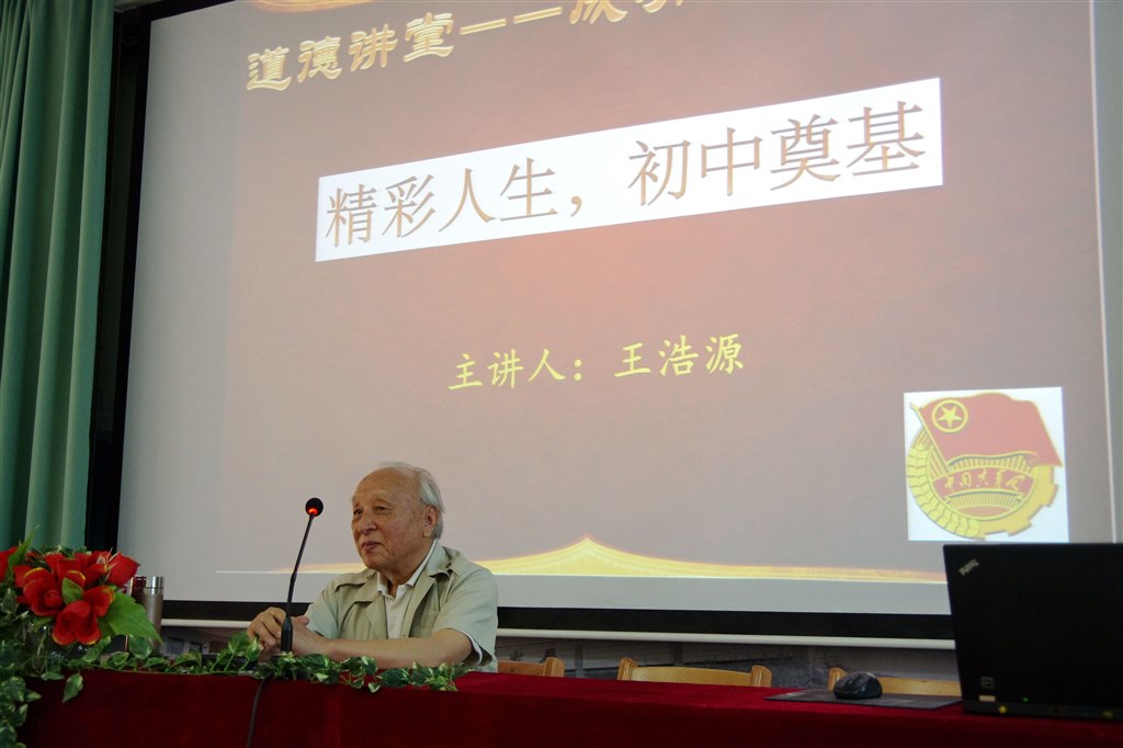 中国共青团是中国共产党领导的优秀青年的群众组织,在历史上的众多关键时刻和许多重大事件中,共青团的工作都得到了中国共产党的指导和帮助。 2014年5月12日,翠竹中学团委邀请中国共产党的优秀党员,新四军退伍老军人,关心下一代成长的热心人——王浩源同志开展了一场精彩讲座——“精彩人生,初中奠基”。前来聆听讲座的有翠竹中学的主要团队工作负责人和第33届团校全体学员。 王老先生首先用他沙哑的喉咙高唱了一曲《松花江上》,全场的气氛立刻被调动起来。老先生用一个党员高深的理论造诣结合自己的人生阅历和国内外多年来发生的重大案例讲述了伟大中国近一个世纪来面对的困难和取得的成就。 个人与国家是同命运共呼吸的,王老先生的讲座深入浅出地为现场的学生们诠释了这个道理。使得大家对自己人生的意义,自己与国家之间的关系有了新的认识。 说完这些宏观的内容,王老先生又唱了“长征组歌”的一段,劝慰学生们要有刻苦的精神,承担起新时代年轻人肩头的担子,探求成功的道路。 王老先生精辟地从“激志”、“求道”、“谋略”和“夯基”四个方面,指导学生们去寻找自己人生的方向;为自己的梦想,为国家和社会的发展,为伟大的中国梦,去实践和奋斗。 今年已经84岁高龄的王老先生,整个讲座全程都是以一个军人的站姿面对现场的学生,加上他充满感情的歌声和生动的演讲,感染了在场的每一个人,听完讲座后,大家都表示收获颇多。(钱秋明)