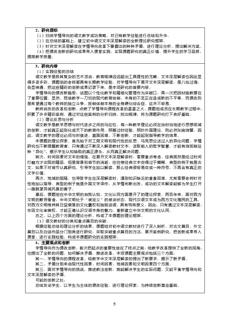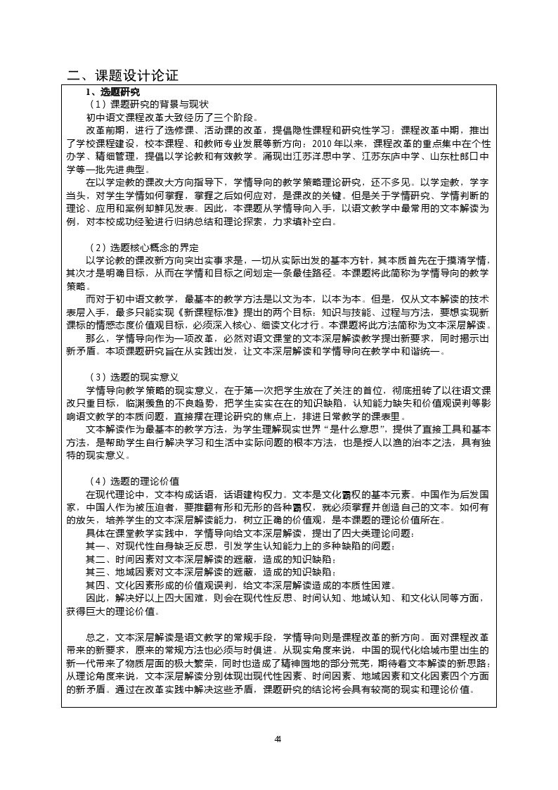 《语文文本深层解读与学情导向之间的矛盾研究》课题评审书