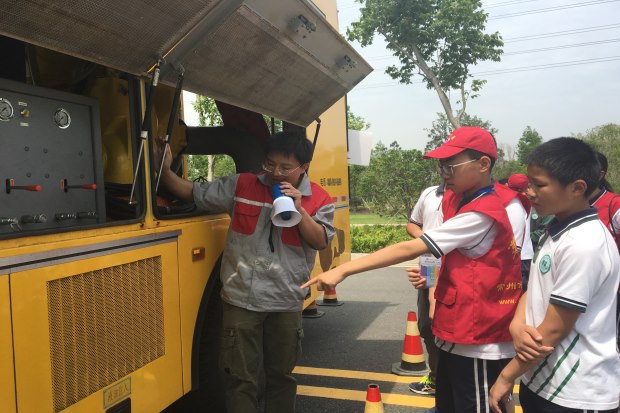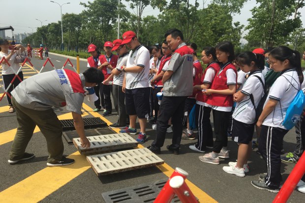 “日出江花红胜火,春来江水绿如蓝。”“遥望洞庭山水翠,白银盘里一青螺。”“君不见黄河之水天上来,奔流到海不复回”…… 溪水叮咚,山泉清澈,大海磅礴,江河汹涌,浪花飞溅,雨水飘扬…… 水以摇曳的身姿,幻变的色彩,滋润世间万物,装点纷繁世界,至清至美; 水以无形的音,灵动的魂,浸染诗词文化,启迪生命智慧,至真至善; 这维系万物生命的成长源泉,这给予绵绵遐思与感悟的生命之水,怎能不让我们用生命去爱?去呵护? 在6月5日——世界环境日到来之际,常州污水排放系统近期向常州市民免费开放参观。翠竹中学的小记者们在常州化龙巷的牵头与组织下,6月2日上午有幸来到排水管网所参观访问,可谓大开眼界!受益匪浅! 一、这里,有一群生命之水的守护者。 城市每天的发展、居民日常的生活中,都会产生大量的废水污水,这些严重污染环境、甚至危害生命健康的水都到哪里去了呢?一到暴雨天,这么多的雨水还有路面上的积水都直接流到地下去了吗?排水管网所是做什么的呢?和污水处理有关系吗?……很多的好奇、陌生与疑问,在小记者们认真聆听了排水管网所工作人员的讲解后,都一一得到了解答。 一到排水管网所,工作人员便热情地接待了小记者们,而后开始详细地向大家介绍常州市排水管网的相关知识,幽默细致的讲解,配以生动精致的视频图片,让小记者们了解了水污染、污水处理,管网所与污水处理厂的关系,以及管网所的工作职能等等。 原来,城市地下密密麻麻地分布着各种污水管道,而这些管道能否将污水顺利输送到相应的污水处理厂,进行下一步的污水处理,便是我们管网所的职责所在。及时清理管道淤堵,定期排查道口安全,密切关注雨天防汛…… 小小管网,大有责任;输送污水,积极排查;奋勇担当,守护生命之水! 二、这里,有一群美丽常州的建设者。 排水管道平时管网所的叔叔阿姨们是怎么工作的呢?视频中管道清理时的那些高科技具体是什么样子的?……听了讲座之后,不再陌生的小记者们对管网工作更加好奇不已,于是,在工作人员的带领下,他们来到了横塘河湿地公园附近管网工作的模拟实践地,亲身体验实践,进行零距离地观察与感受。 了解一代代更替发展、型号多样的排水井盖,观看抓斗车如何从管道中抓取垃圾;或是亲手操作cctv机器车进入管道,或是戴上潜望镜,观察管道内部结构;甚至登上工程车,细细了解应急排涝作业的工作原理,穿上下井工作服,感受下井作业工作者的艰辛与不易。 小小管道,大有学问;疏通技术,步步精进;不畏艰辛,建设美丽常州! 三、这里,有一群城市未来的传承者。 污水的处理,管道的养护,机器的更新,技术的精进……参观的过程中,管网所的叔叔们一再感叹管网建设与未来城市对人才的需要,对科技的期待。 通过此行,愿化作成长的动力,默默铭记于心: 小小公民,大有作为,爱护环境,科技前行,城市发展,传承未来使命!